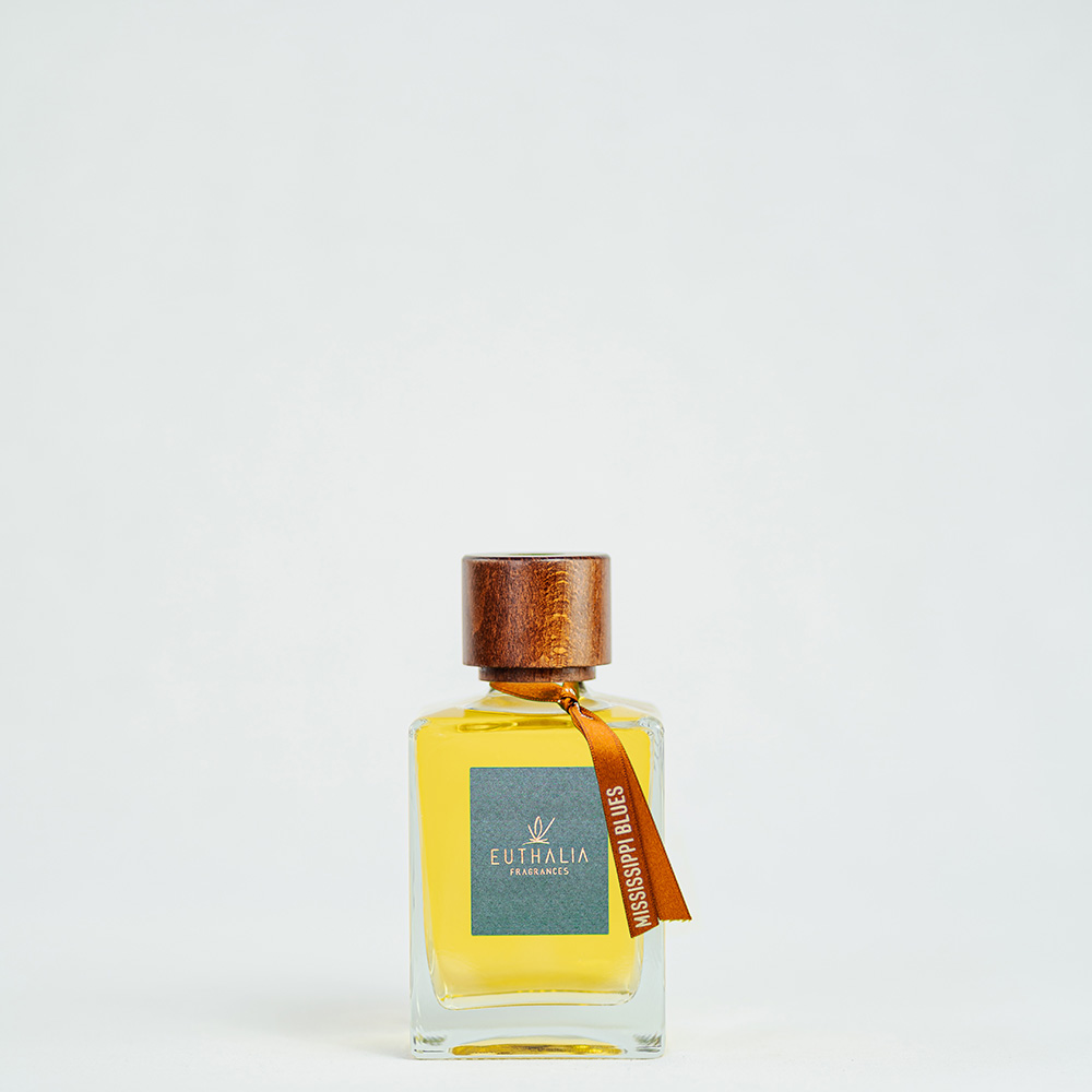 As Mississippi Blues evolves, it transitions into a heart that unveils the complexity of precious woods, heliotrope, violet, and rose. The precious woods add depth and sophistication, while heliotrope and violet contribute a soft floral touch. Rose adds a hint of romanticism to the composition, balancing the intensity of the leather and woods.